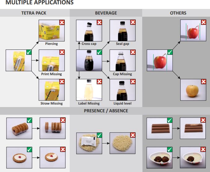 FEATURES µ Simple & reliable vision inspecon system for different industry applicaons µ Touch screen with user-friendly mullingual user interface µ A single high-resoluon smart camera performs mulple inspecons of various objects. µ State of the art customised reflecon-free illuminaon suitable for all type of inspecons and objects µ Addional camera opon for barcode inspecon µ Product manager ulity available to create & save the product µ Meets 21 CFR Part 11 & GAMP compliance - Presence / Absence Vision Inspecon System Propix Technologies Pvt. Ltd. info@propixtech.com | www.propixtech.com MULTIPLE APPLICATIONS FEATURES µ Inspecon based on shape, size & color Ÿ Presence / Absence Orientaon Count Paern Mix-up Dimension µ 4 user levels & role management – Administrator, Supervisor, Operator & QA µ Various statutory non-editable reports like audit trail, product / batch wise reports µ Flexibility to choose as per applicaon and machine requirement Ÿ Rejecon unit-air nozzle / pusher based Ÿ Rejecon verificaon sensor Ÿ Rejecon bin with rejecon bin full sensor Ÿ Packaging machine stop signal